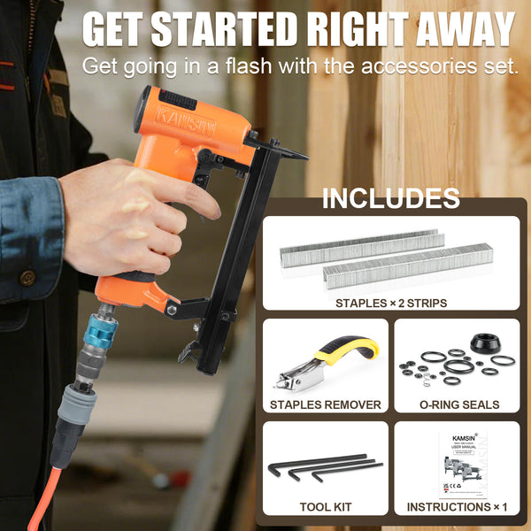 Kamsin KNL7116S 22 Gauge Pneumatic Upholstery Stapler with Rapid Fire Switch, 3/8-Inch Crown, 1/4-Inch to 5/8-Inch Leg Length, Fine Wire Stapler for Furniture and Fabric Attachment