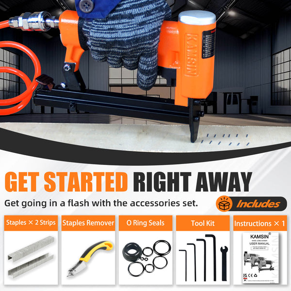 KAMSIN KNL8016S 21 Gauge Pneumatic Serial Upholstery Stapler with Extended Long Magazine, 1/2-Inch Crown Staples, 1/4-Inch to 5/8 -Inch(6-16mm) Leg Length, Air Power Upholstery Staple Gun for Furniture and Woodworking