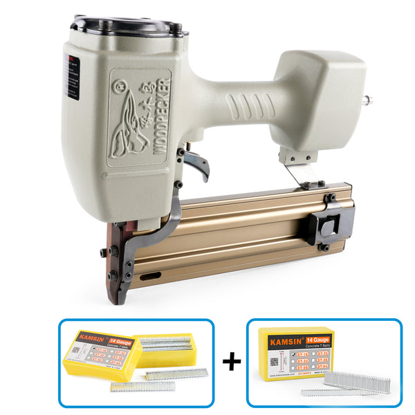 WOODPECKER ST64 14 Gauge Pneumatic Concrete T Nailer with 400 PCS 3/4" Concrete T Nails, 3/4" to 2-1/2" Concrete Nail Gun for Heavy Duty Concrete Nailing, Decking , Subflooring, Siding, and Soffits