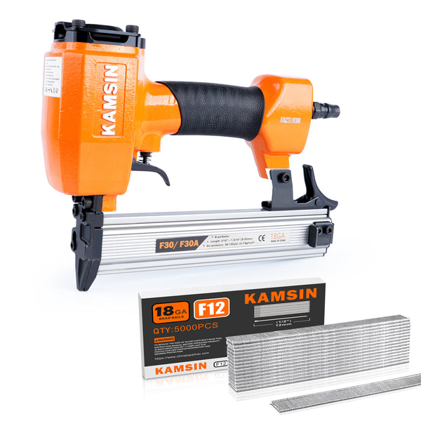 KAMSIN F30 18 Gauge Pneumatic Brad Nailer - 3/8-inch to 1-3/16-inch (10-30mm) Brad Nails, Air Power Brad Nail Gun, Finish Nailer for Woodworking Projects, Carpentry, Upholstering