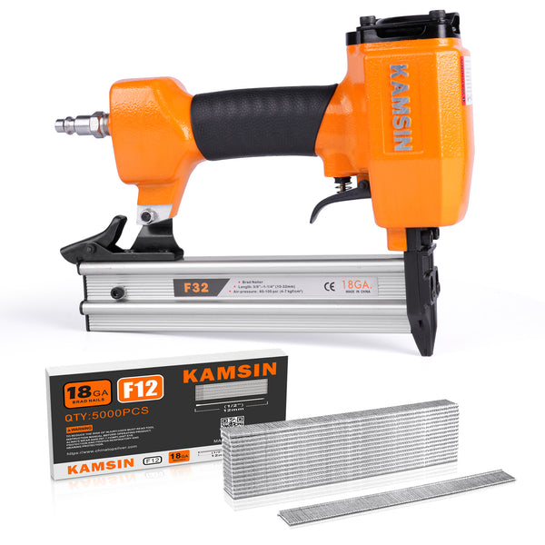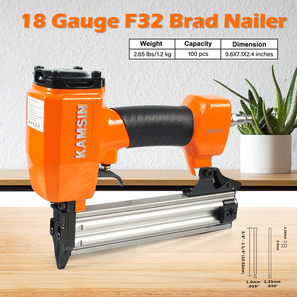 KAMSIN F32 18 Gauge Pneumatic Brad Nailer - 3/8-inch to 1-1/4-inch (10-32mm) Brad Nails, Air Power Brad Nail Gun, Finish Nailer for Woodworking Projects, Carpentry, Upholstering
