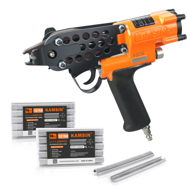 Combination of Kamsin K-SC760 16 Gauge Pneumatic C Ring Gun Kit and 1/2-Inch Crown Hog Ring Staples