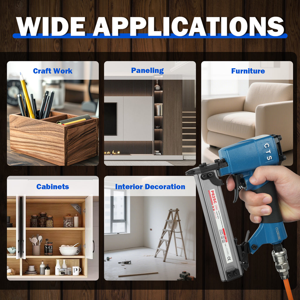 WIDE RANGE OF APPLICATIONS: It is suitable for furniture assembly, cabinet installation, door and window decoration, picture frame making, interior molding, and other surface finishing applications