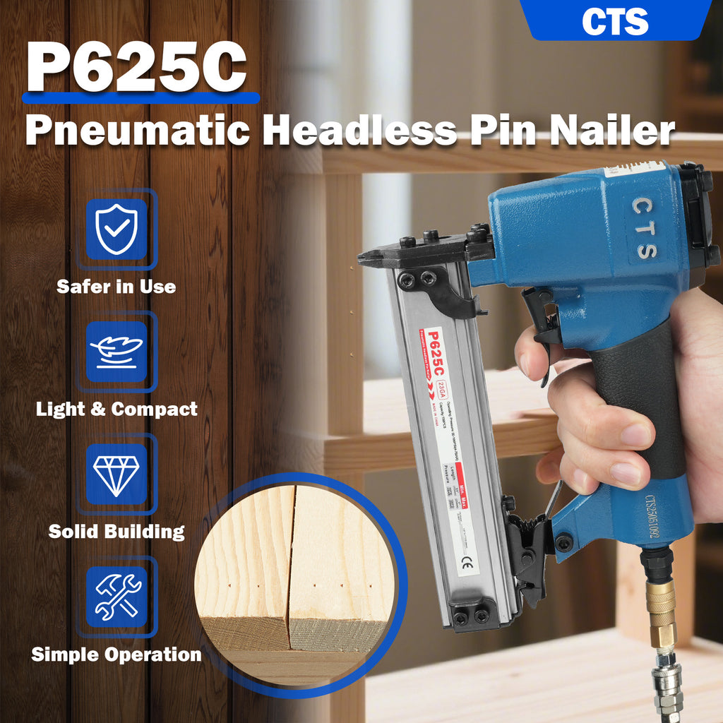 Home/Collections/Pin Nailer/P625C Pneumatic Headless Pin Nailer, 23 Gauge Air Power Nail Gun, Drives 1/2-Inch to 1-Inch (12-25mm) Headless Micor Pins with Safety for Furniture, Crafts, Picture Framing