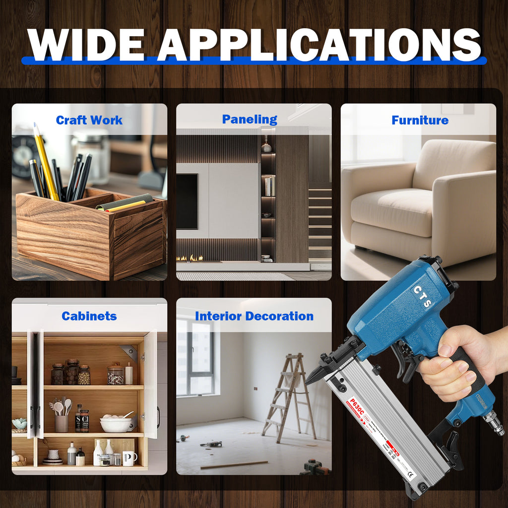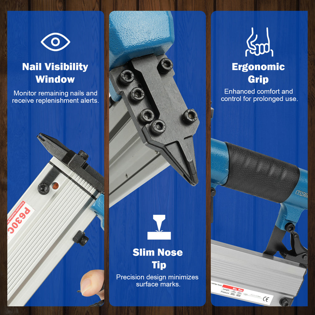 PRECISE ADAPTATION: The P630C 23 pneumatic pin nail gun can drive headless pin nails with lengths ranging from 1/2 inch to 1 3/16 inch (12-30 mm), meeting various fine processing requirements
