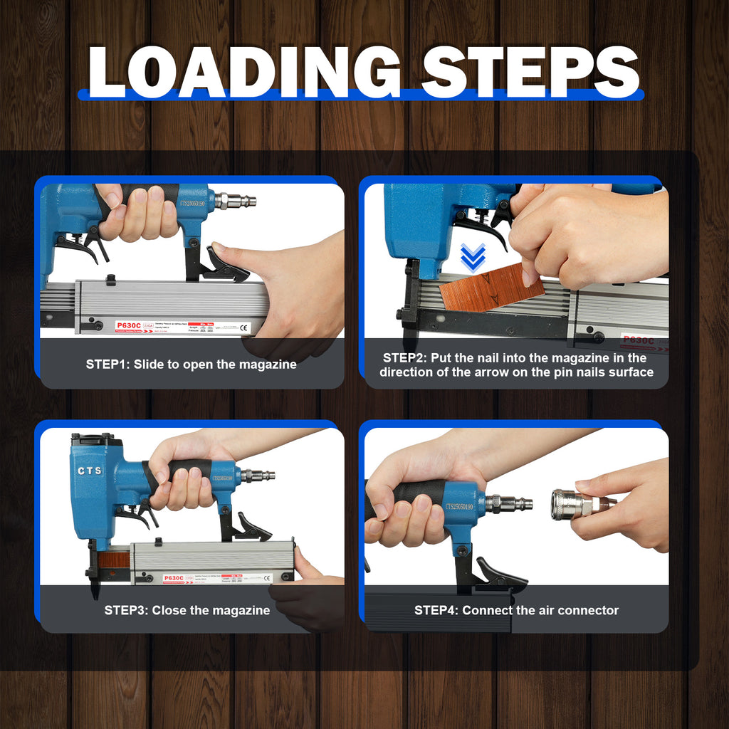 EFFICIENT AND DURABLE: Magazine capacity can hold up to 150 pin nails, reducing the trouble of frequent nail changes. The slide loading design makes loading faster and more convenient, saving operation time