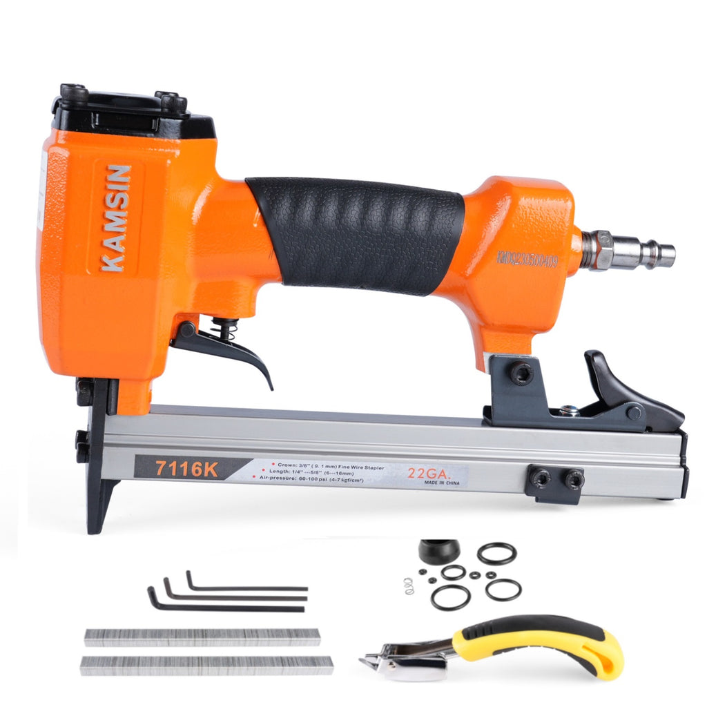 KAMSIN 7116K 22 Gauge 71 Series Pneumatic Upholstery Stapler, 3/8-inch(9.0mm) Crown Fine Wire Tool, 1/4-inch to 5/8-inch(6-16mm) Leg Length Air Upholstery Staple Gun for Furniture Upholstering