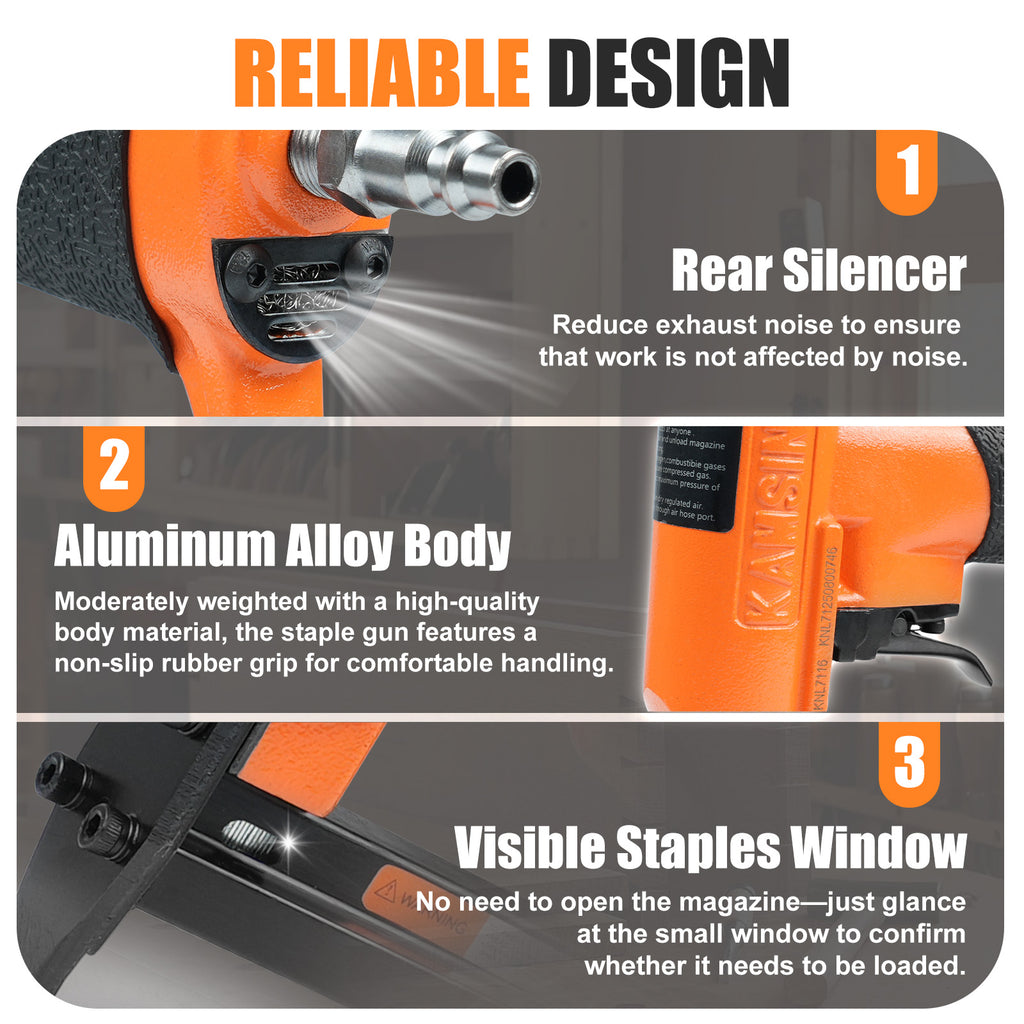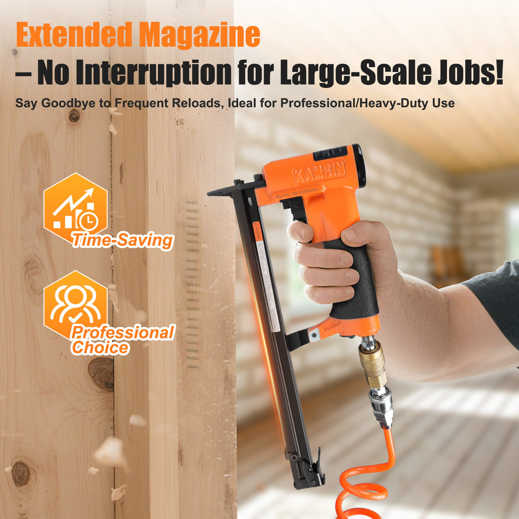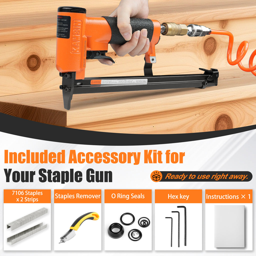Kamsin KNL7116 22 Gauge Extended Magazine Pneumatic Upholstery Stapler, 3/8-Inch Crown, 1/4-Inch to 5/8-Inch Leg Length, Fine Wire Stapler Gun for Furniture and Fabric Attachment