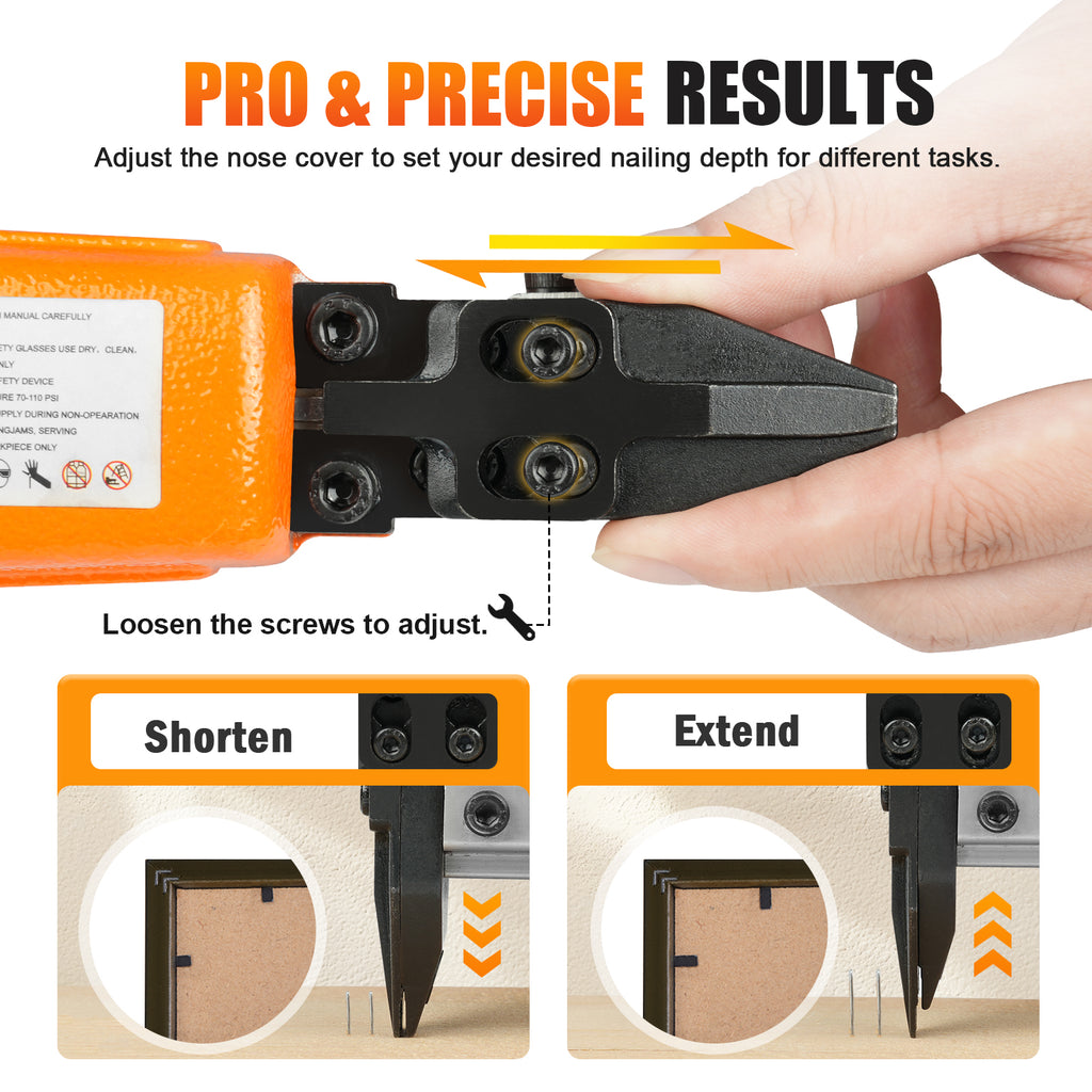 EFFORTLESS POWER: Our pneumatic drive system delivers consistent, powerful performance, replacing manual effort and significantly boosting productivity. The ergonomically crafted design reduces hand fatigue, allowing for extended use with comfort and achieving flawless frame fixing every time.
