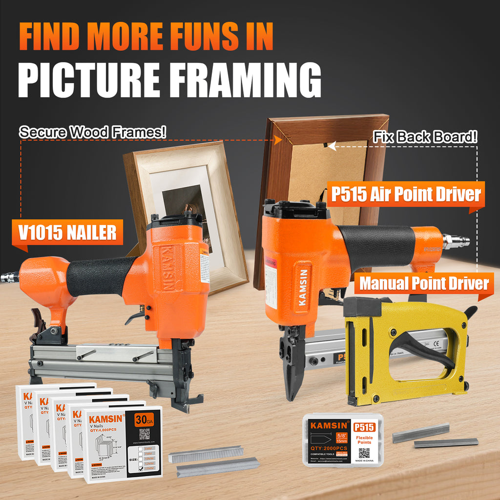 PERFECT FRAMING DUO: Pair the KAMSIN V1015 for securing frame edges with the P515 for effortlessly fastening backboards. This combination provides a complete, seamless framing solution in one simple step.