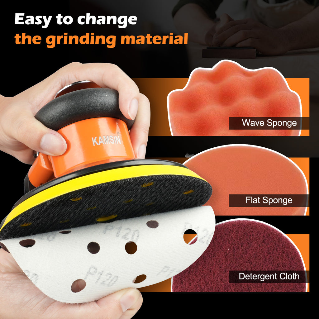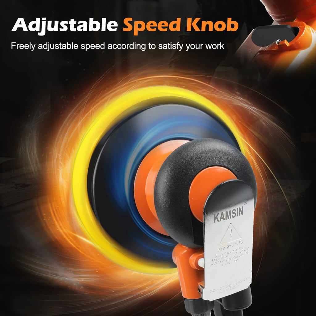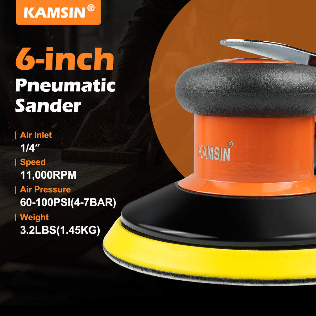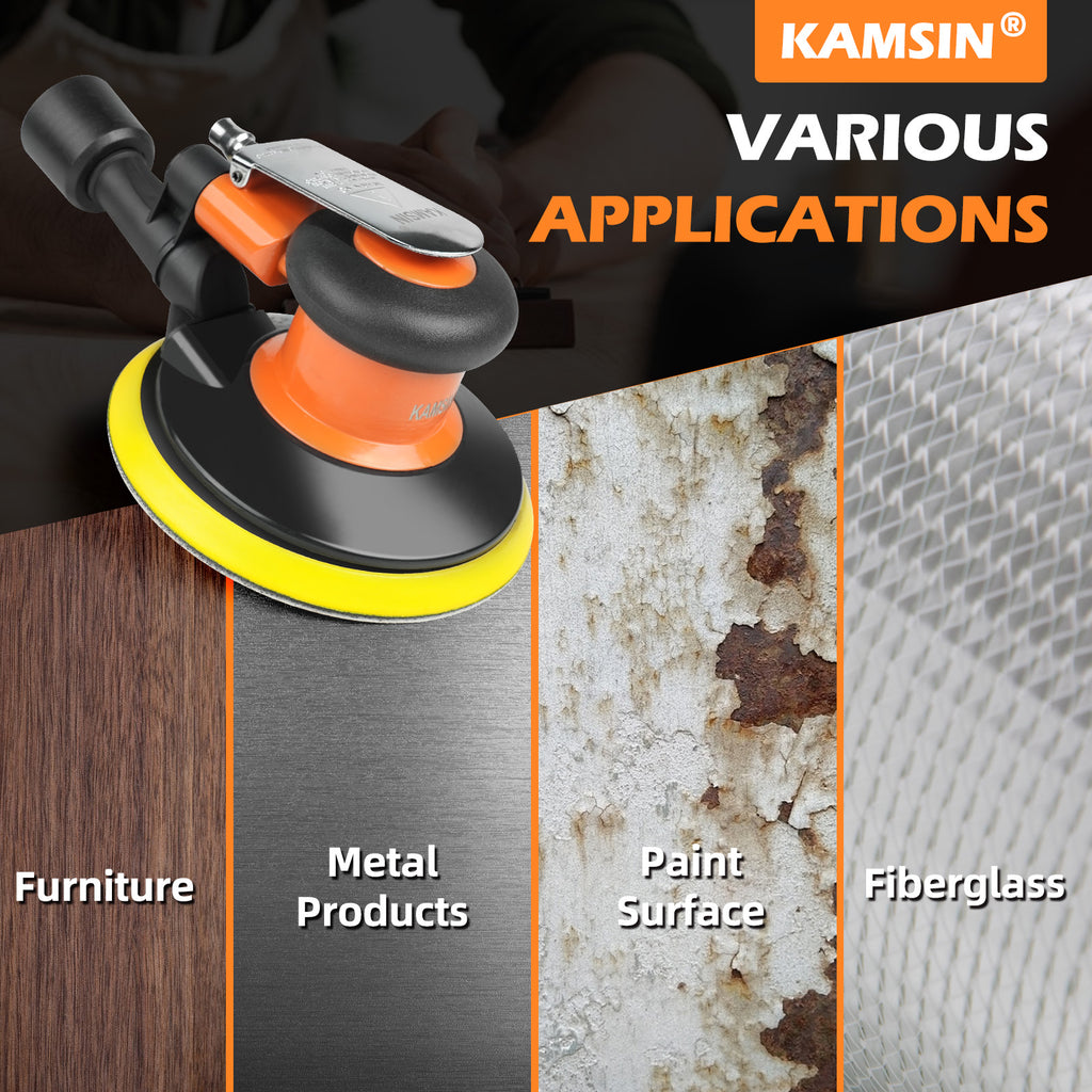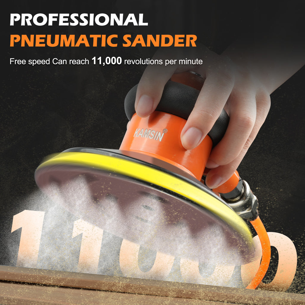 【PROFESSIONAL PNEUMATIC SANDER】 With light weight and ergonomic design, KAMSIN 5 inch random air sander can be easily held in palm