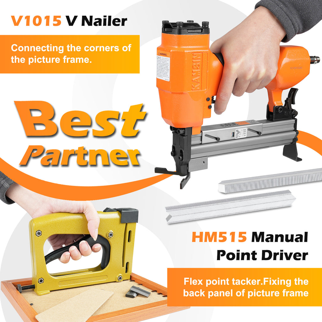 KAMSIN V1015 Pneumatic Picture Frame Nailer Gun – 30 Gauge V-Nailer, Drives 3/16" to 19/32" (5-15mm) V-Nails – Professional Picture Frame Joiner Tool for DIY Picture Frames Making & Carpentry