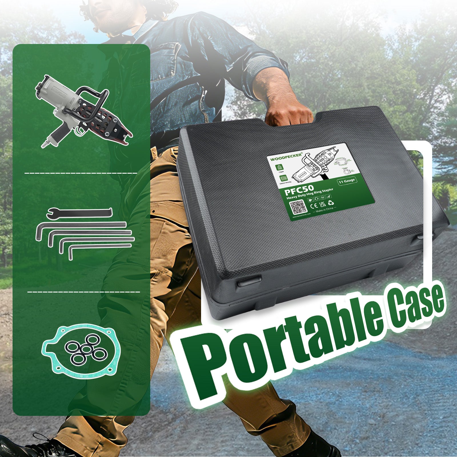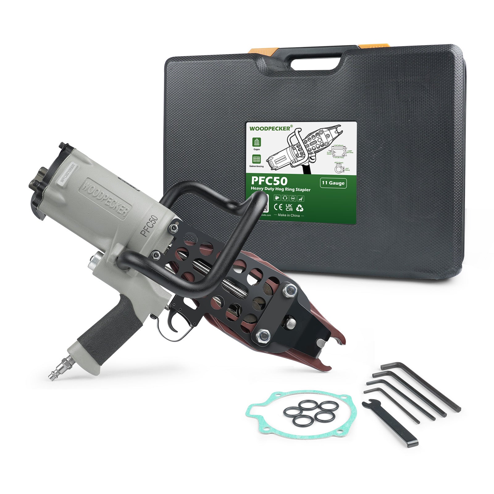 Woodpecker C130L/PFC50 11 Gauge Easy Carry Pneumatic Hog Ring Gun for Gabion 1 1/2 Inch Crown Air C Ring Plier for Wire Cages, Gabion, Fencing, Sofa, Spring Mattress, Car Seat, Bedding, Wire Mesh Baskets