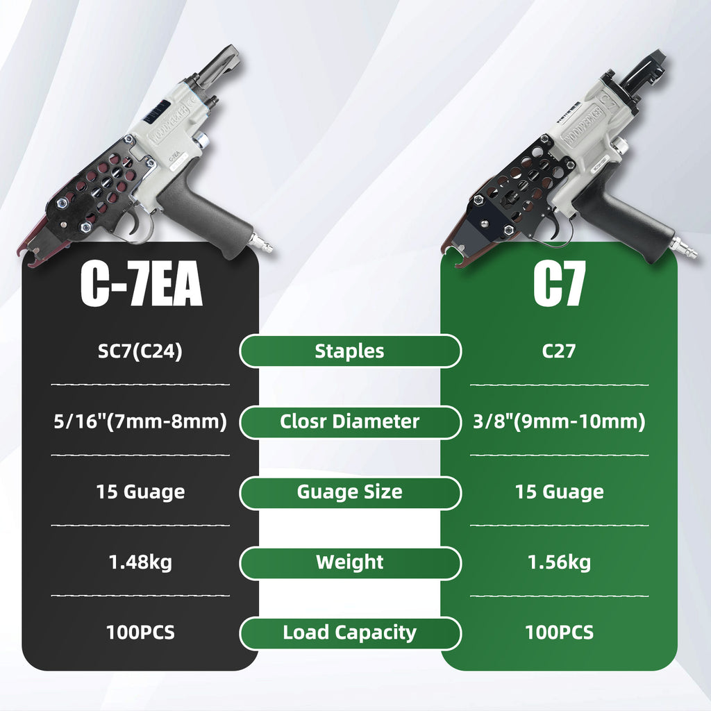 *Suitable for mattress manufacturing Compared to the K-SC7C and K-SC7E, it has a larger closing diameter 3/8"(9mm-10mm) for larger jobs. It is ideally suited for industrial production in,sunch as mattress manufacturing. Save labor and increase productivity!